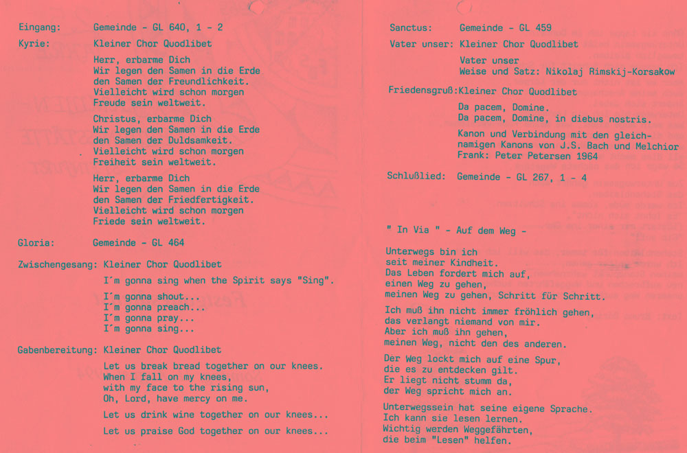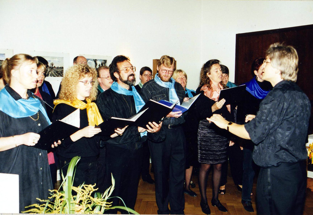 | 14. - 16.10. | Dieses Probenwochenende hielt man in der Villa Fleiter, Steinfurt-Borghorst. Hildegard und Hermann Badde ermöglichten dem Chor, mit den einzelnen Stimmgruppen getrennt voneinander zu üben. Hildegard übte dazu mit den Frauen und Hermann mit den Männern in getrennten Räumen, um das Liedgut zu erarbeiten. Täglich gab es auch gemeinsame Probenzeiten. Ein das Chorwochenende abschließende Gespräch mit Rückblick und Planungsabsprachen beendete das Intensivwochenende. Damit auch die jungen Eltern teilnehmen konnten, war für die Kinder eine Betreuung eingeplant. |