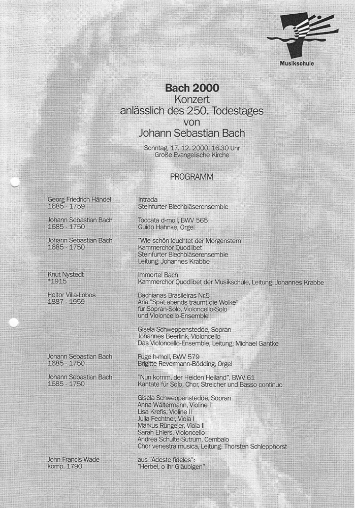 | 24.06. | Beim Musikschultag 2000 in Herfort wurde noch einmal das Konzert mit dem Titel "Et in terra pax" aufgeführt. |