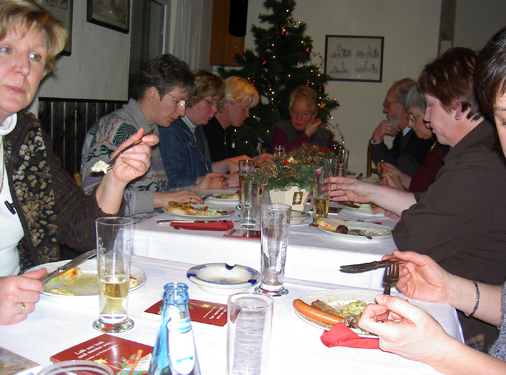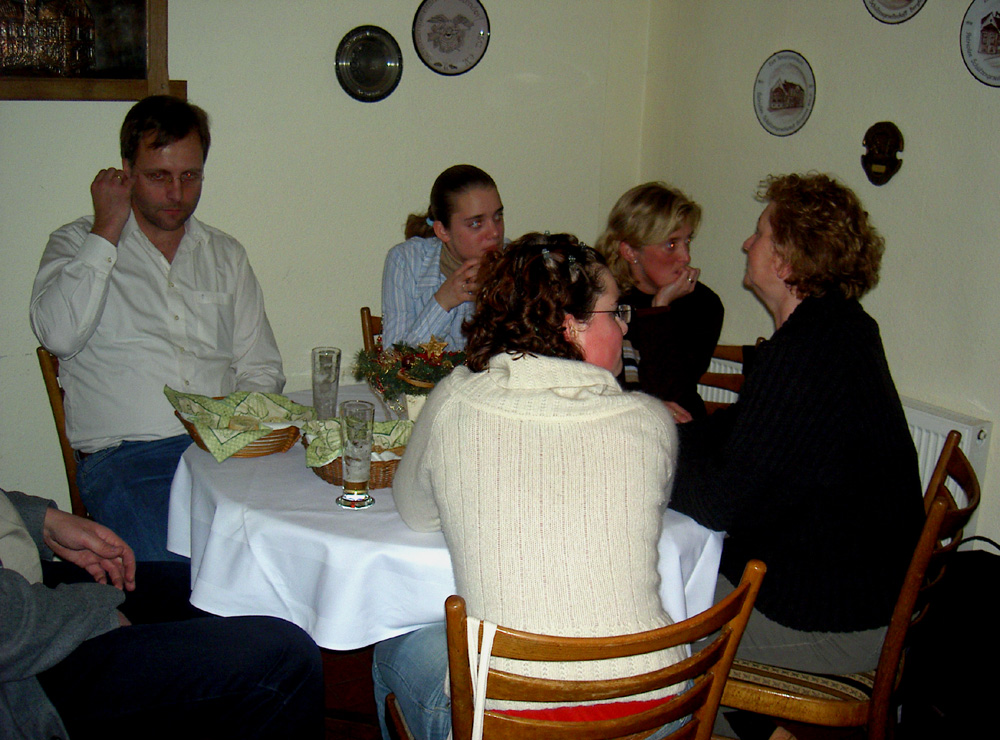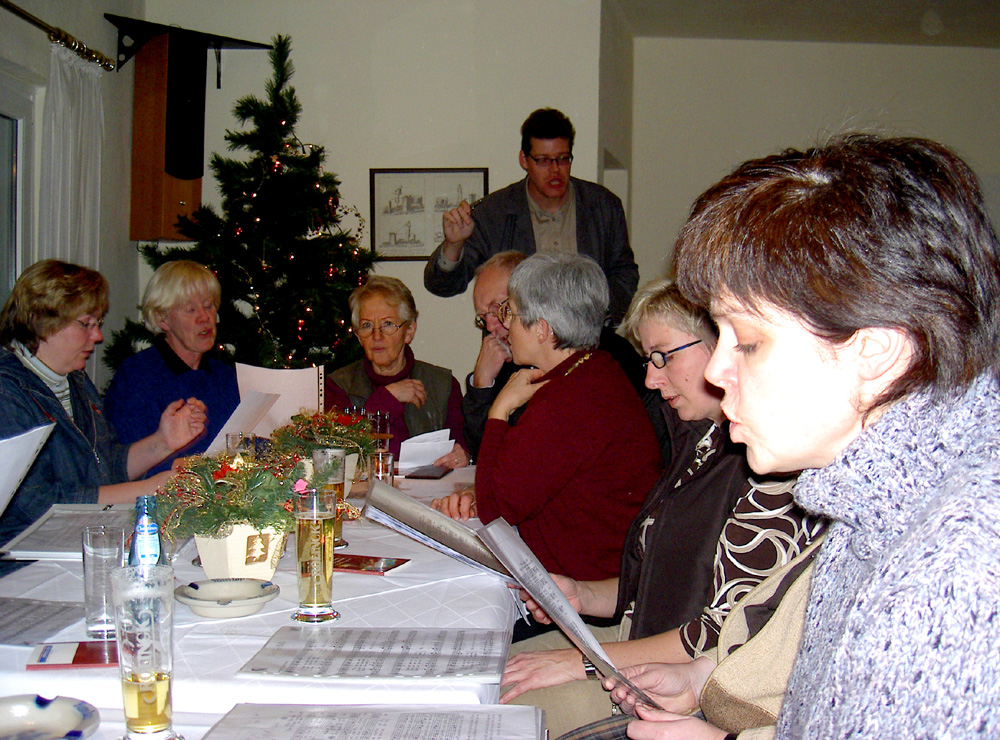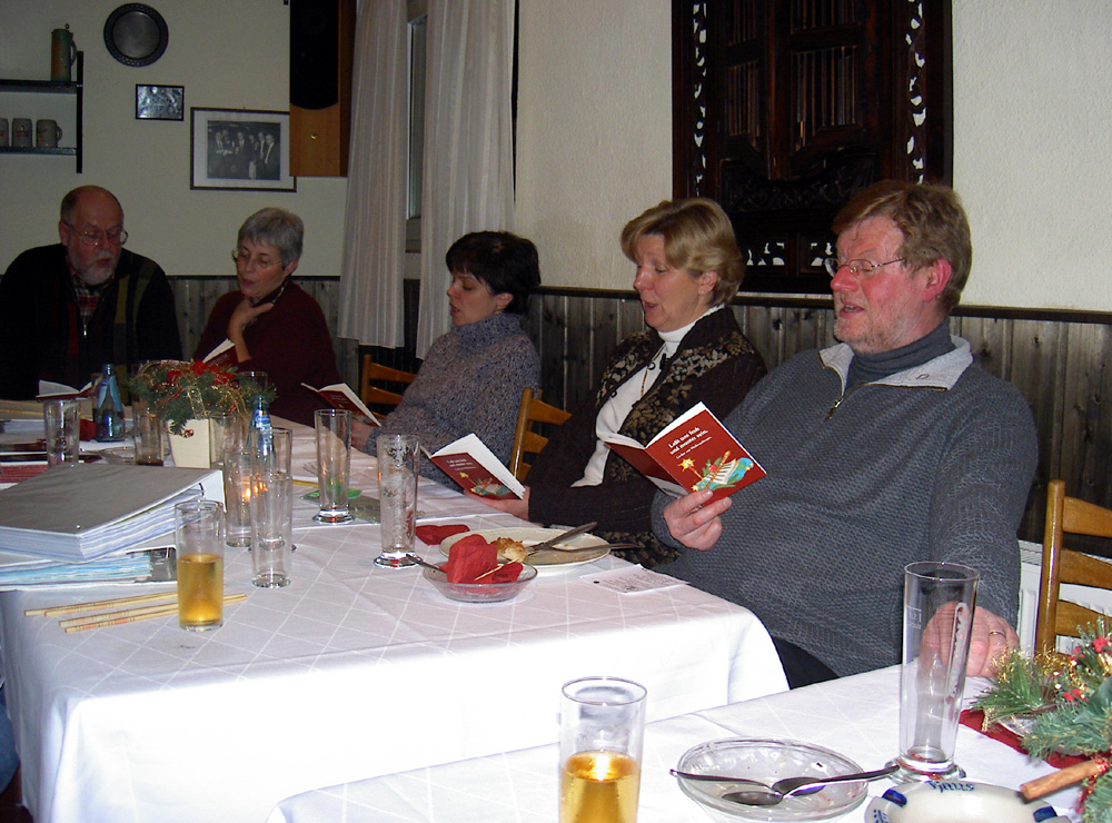 Als Abschluss stand eine Adventsfeier in der Gaststäte Tümler für den Chor auf dem Plan. Man Sprach noch einmal über die Ereignisse des Jahres, nahm ein schönes Essen vom Buffet ein, sang mit und ohne "Chorleiterhilfe" Advents- und Weihnachtslieder und unterhielt sich in gemütlicher Runde. |