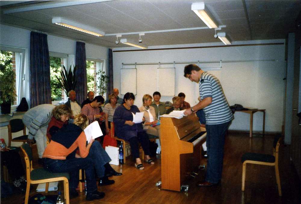 Seine Jahresversammlung hielt der Chor diesmal im Jugenddorf Steinfurt ab. Der wichtigste Punkt der Tagesordnung war der Besuch von Herrn Brauer, Rheine, vom Sängerbund Nordwestfalen. Er erläuterte dem Chor, der seit einiger Zeit selbständig ist, die Notwendigkeit der rechtlichen Neustrukturierung in Form der Vereinsgründung und Vereinseintragung in das Register der Stadt Steinfurt . Die entsprechenden Vorbereitungen wurden in den anschließenden Monaten vorgenommen. Bei dieser Versammlung beschlossen die Anwesenden auch den Inhalt und das Thema des nächsten Konzertes: „Erkennen sie die Melodie“ sollte das Motto sein. Gesungen und in Szene gesetzt werden sollte nach Vorschlag des Chorleiters Dr. Thomas Eickhoff Musik aus Film, Funk und Fernsehen. |