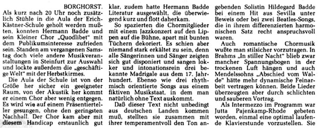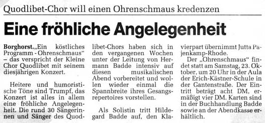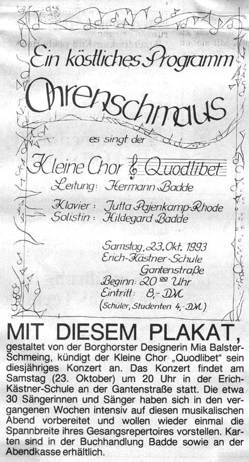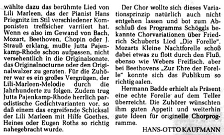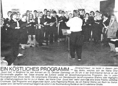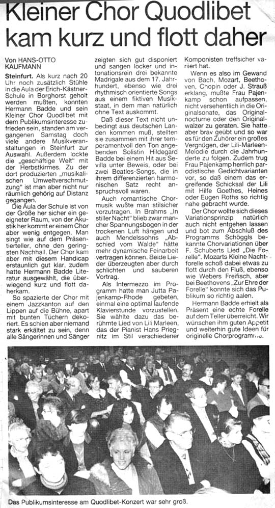 Kleiner Chor „Quodlibet“ hatte breite Angebotspalette im Programm / Intermezzo mit Jutta Pajenkamp–Rhode |